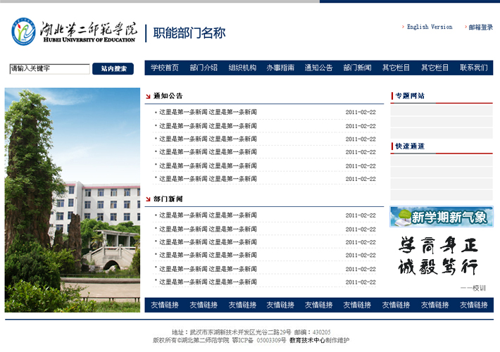 系院、职能部门二级主页建设,参考模板