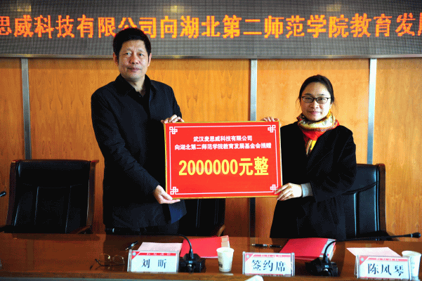 捐赠仪式上,武汉麦思威科技有限公司总经理陈风琴向BEAT365官网教育发展基金会捐赠200万元并介绍了企业规模及公司发展情况。