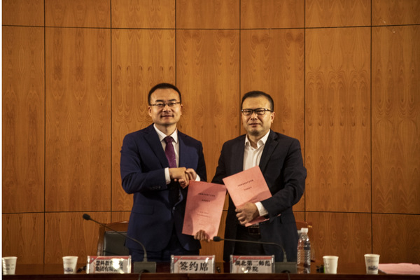 夏力、管刚代表校企双方签署了共建产业学院协议,并与刘昕、曾慜共同为集成电路产业学院揭牌。