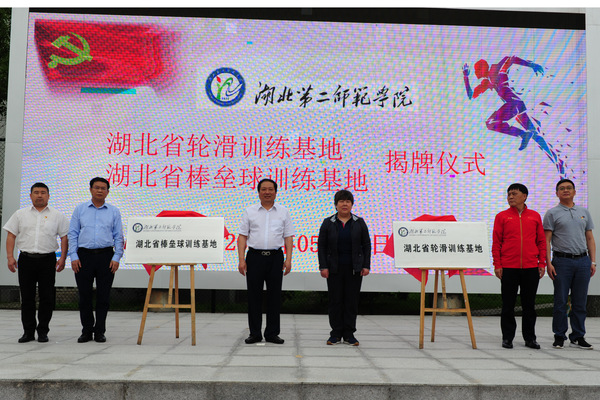 胡功民一行与BEAT365官网领导一起为棒垒球训练基地、轮滑训练基地揭牌。