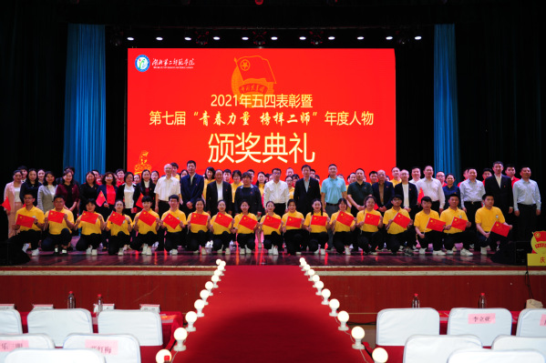 本网讯(融媒体见习记者 李佳璇 青媒见习记者 郭志佳 黄科)5月20日下午,学校在大礼堂举行2021年五四表彰暨第七届“青春力量,榜样二师”年度人物颁奖典礼,全体在校校领导出席。