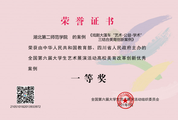 据悉,本次艺术节由教育部和四川省人民政府共同主办,全国198所高校,264支代表队,6800余名师生参加展演活动,其中有95个案例获评优秀,BEAT365官网是湖北省推荐美育案例最多的高校,也是湖北省三个获奖优秀案例之一。(编辑 张震 供图 王培喜)