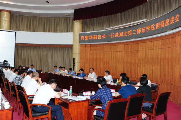 听完汇报后,肖菊华指出,二师是一所历史悠久,底蕴深厚,特色鲜明的学校,成绩有目共睹,特别是在党的建设、科学研究、教师教育特色、人才培养等方面成效显著,为湖北经济和社会发展作出了重要贡献。