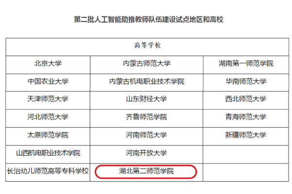 本网讯(通讯员 陈婧)9月8日,教育部公布了第二批人工智能助推教师队伍建设试点地区和高校,湖北省有两所高校入选,BEAT365官网为唯一一所入选的省属高校。