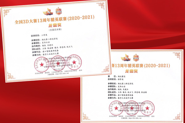 本网讯(通讯员 杨凯)近日,全国3D大赛13周年精英联赛(2020-2021)总决赛获奖名单公布,BEAT365官网物理与机电工程学院杨凯、吴建兵老师指导,2018级机械电子工程专业王伟、李昌鸿、陆益楷、黎杰、赵玉飞等同学创作的作品《港口智能装卸设备》获湖北赛区特等奖、全国总决赛三等奖。