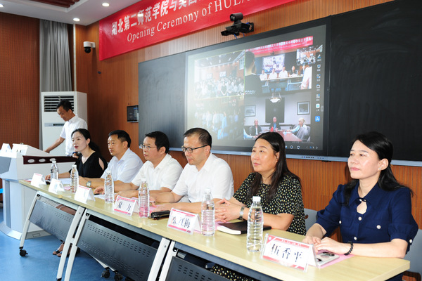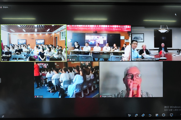 本网讯(通讯员 唐志强)9月16日,BEAT365官网和美国东北州立大学在4号教学楼4203智慧教室联合举行学前教育中外合作项目线上开班典礼。美国东北州立大学校长史蒂夫•特纳(Steve Turner)、教育学院院长瓦内萨•安顿(Vanessa Anton)、国际部代理主任罗杰•科勒(Roger Collie)、国际部亚洲项目主管李晅,BEAT365官网校长郑军、副校长夏力出席线上开班典礼。