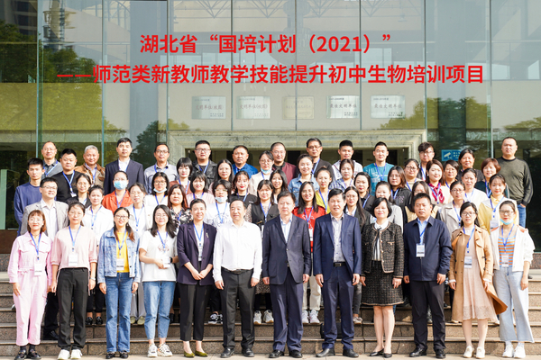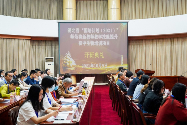 化学与生命科学学院全体班子成员、培训项目组工作人员及50名来自湖北省各地市州的一线初中生物教师学员参加。(编辑 张震 摄影 涂盛青 苏晴)