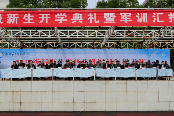 本网讯(融媒体记者 梁馨月 刘劲知 融媒体见习记者 吴楚楚)10月21日上午,学校在田径场举行2021级新生开学典礼暨军训汇报表演。武警湖北总队机动支队二大队队长杨玄,校党委书记张国秀,校长郑军,校党委副书记柯美录,副校长夏力、胡兴、陈勇,校党委常委周忠出席,副校长黄颂主持。