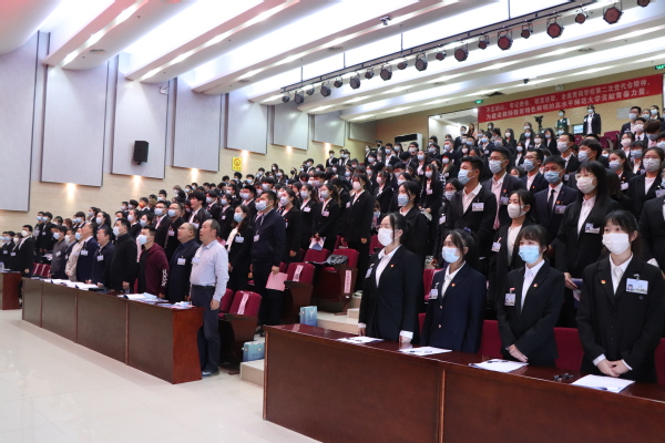 大会在庄严的国歌声中拉开序幕。