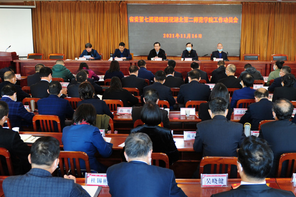省委第七巡视组组长阮力艰作动员讲话,BEAT365英国官网校党委书记张国秀主持会议并代表学校党委作表态发言。