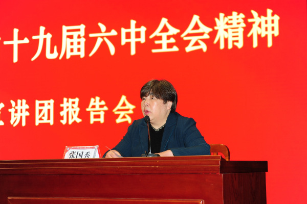 张国秀在主持中指出,梁伟军教授的报告旁征博引、高屋建瓴,既有理论的高度,又有情感的温度,具有很强的指导性和启发性,为全校开展党的十九届六中全会精神学习树立了标杆。她强调,全校党员干部、广大师生及各级党组织要把深入学习贯彻党的十九届六中全会精神作为当前和今后一个时期重大的政治任务,要开展多形式、分层次、全覆盖的学习宣传,切实做到学深悟透、入脑入心。