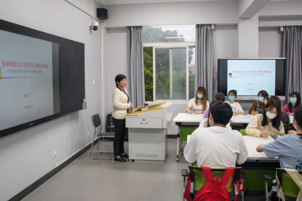 杨鲜兰分享了对青年信仰构建的想法:一是加强青年大学生信仰教育。二是树立正确的世界观、人生观、价值观。三是形成科学的思维方式、生活方式、行为方式。四是全社会共同参与、协同育人。