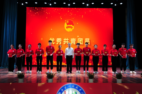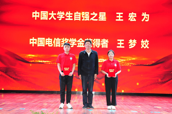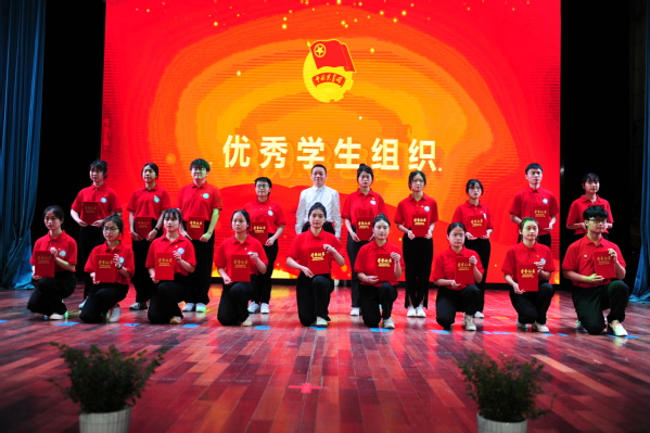 工作人员宣读表彰文件,对“中国大学生自强之星”获得者王宏为,中国电信奖学金获得者王梦姣,马院等7个“五四红旗团委”,2020级思想政治教育1班团支部等64个“优秀团支部”,管理学院学生会、艺术学院社团指导中心、管理学院青年志愿者协会等18个“优秀学生组织”,武娇等588名“优秀共青团员”,王洁等254名“优秀共青团干部”进行表彰。出席领导为获奖者颁奖。