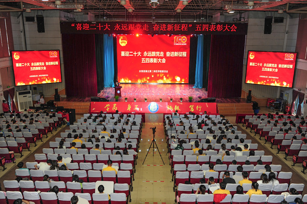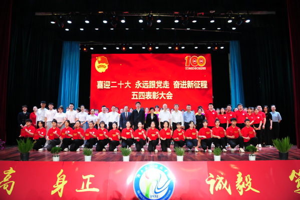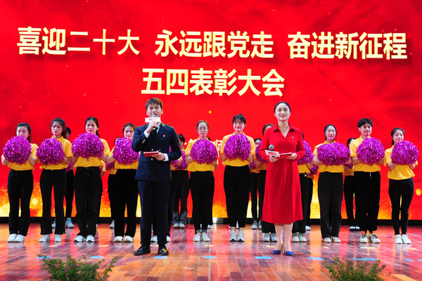本网讯(通讯员 张静 席中刚 钱晓琳)5月18日下午,学校在大礼堂隆重召开2022年“喜迎二十大 永远跟党走 奋进新征程”五四表彰大会,全体在校校领导出席。