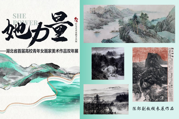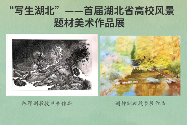 “写生湖北”——首届湖北省高校风景题材美术作品展上,陈郢副教授的作品《英山写生》(中国画,68cm*46cm纸本水墨)、谢静副教授的作品《习家池小景》(油画)参展。