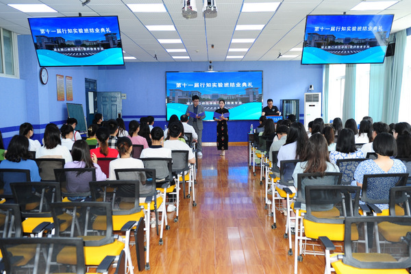 本网讯(通讯员 周阳帆)5月24日上午,学校在实验楼S5209举行第十一届行知实验班结业典礼。副校长夏力出席典礼。教师教育学院院长刘永存、副院长郭三玲,行知实验班全体指导老师和在校学员参加典礼。学员胡灵芝、赵耀东主持典礼。