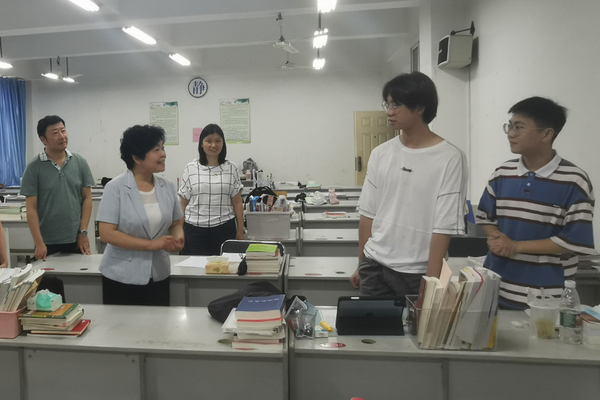 杨鲜兰来到外国语学院助研自习室与留校考研学生亲切交谈,了解大家的学习生活、备考状况等,鼓励大家定好目标、努力学习,预祝大家考研成功。