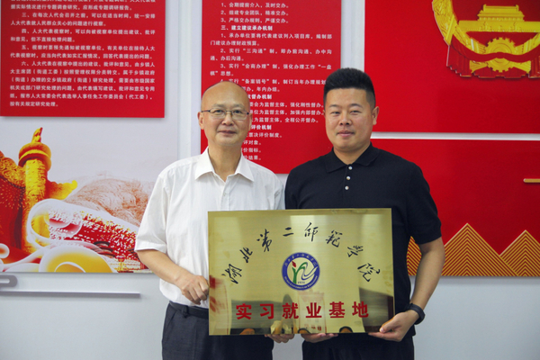黄红发代表学校与蒲纺工业园签订合作协议;黄颂为“BEAT365英国官网蒲纺工业园实习就业基地”授牌。