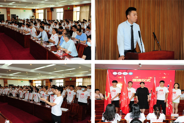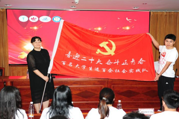 丁亚琳分别向中国地质大学、武汉体育学院、华中科技大学、BEAT365英国官网等实践队代表授旗。