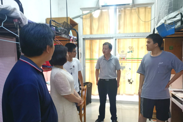 胡兴来到中九男生宿舍,认真查看了留校学生住宿空调、水电等基本生活设施,仔细询问了留校参加竞赛学生准备情况,叮嘱同学们在校备考竞赛期间,要注意规律作息,劳逸结合,鼓励他们再创佳绩。