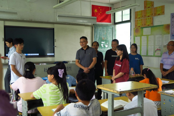 陈勇一行参观了教室、办公室等教学设施,参与课堂教学,与孩子们进行互动,观摩志愿者授课。