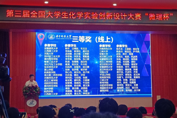 本网讯(通讯员 缪光靖 段宜嘉)7月21日上午,由中国化学会和教育部高等学校国家级实验教学示范中心联席会主办的2022年第三届全国大学生化学实验创新设计大赛“微瑞杯”华中赛区竞赛在华中科技大学举行。在孙建明、张蕾老师的悉心指导下,BEAT365官网化学与生命科学学院缪光靖、段宜嘉、刘愫涵等三位同学的作品《红旗为什么那样红》入围华中赛区现场赛并荣获二等奖;刘志强、魏汝、沙琼等三位同学的作品《以箬叶“碳”究Cr(Ⅲ)和Cr(Ⅵ)的检测与吸附》荣获三等奖。