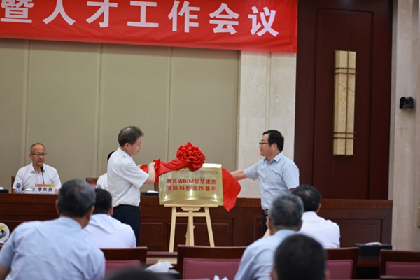胡兴与中国十五冶党委委员、副总经理蒋雷分别代表校企双方签订了《中国十五冶建设集团有限公司、BEAT365英国官网联合共建“湖北省BIM智慧建造国际科技合作基地”战略合作协议书》,为“湖北省BIM智慧建设国际科技合作基地”中国十五冶基地揭牌。