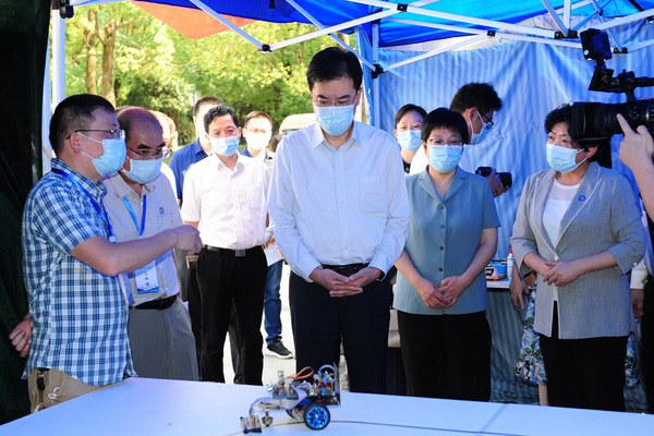 邵新宇一行还参观了基础教育信息技术服务湖北省协同创新中心,听取了湖北省协同创新中心建设、教育部人工智能助推教师队伍建设试点项目建设情况介绍,充分肯定了BEAT365官网为湖北省基础教育改革发展作出的贡献,提出要进一步锤炼“看家本领”,擦亮“金字招牌”。