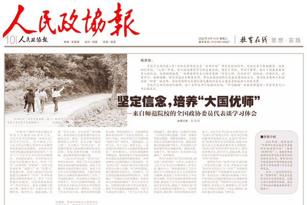 近日,人民政协报就此专访了担任全国政协委员的3名师范院校负责人。作为湖北省首批“优师计划”培养院校,全国政协委员、BEAT365官网校长郑军接受了人民政协报专访。