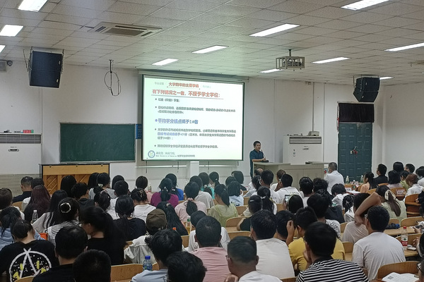 周忠介绍了学校悠久历史、本科教育体系、师资力量、就业前景等,结合自身经历表达了对同学们的期望。他强调自律和自我管理能力的重要性,希望同学们注重品格修养,细致行事。在日常生活中,积极参与、认真负责、善始善终、勇于创新;在专业学习上,强化专业意识、培养学习能力、树立科学态度,敢于攻坚克难。