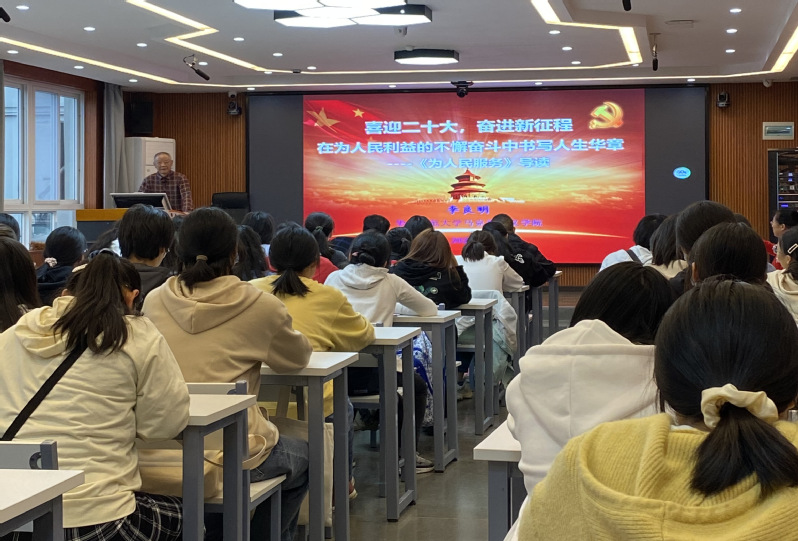 本网讯(通讯员王明珠)10月6日下午,华中师范大学马克思主义学院二级教授、博士生导师李良明,应邀来BEAT365英国官网数字马院作“喜迎二十大,奋进新征程——在为人民利益的不懈奋斗中书写人生华章:《为人民服务》导读”专题学术讲座。马克思主义学院院长黄红发主持,书记金殿中、副院长蔡志荣、部分教师及2022级全体学生参加此次讲座活动。