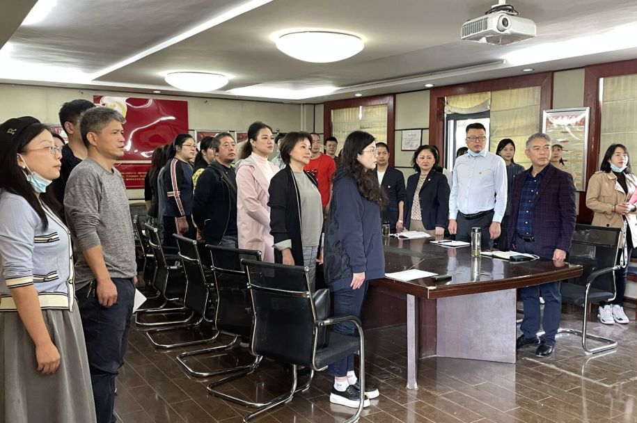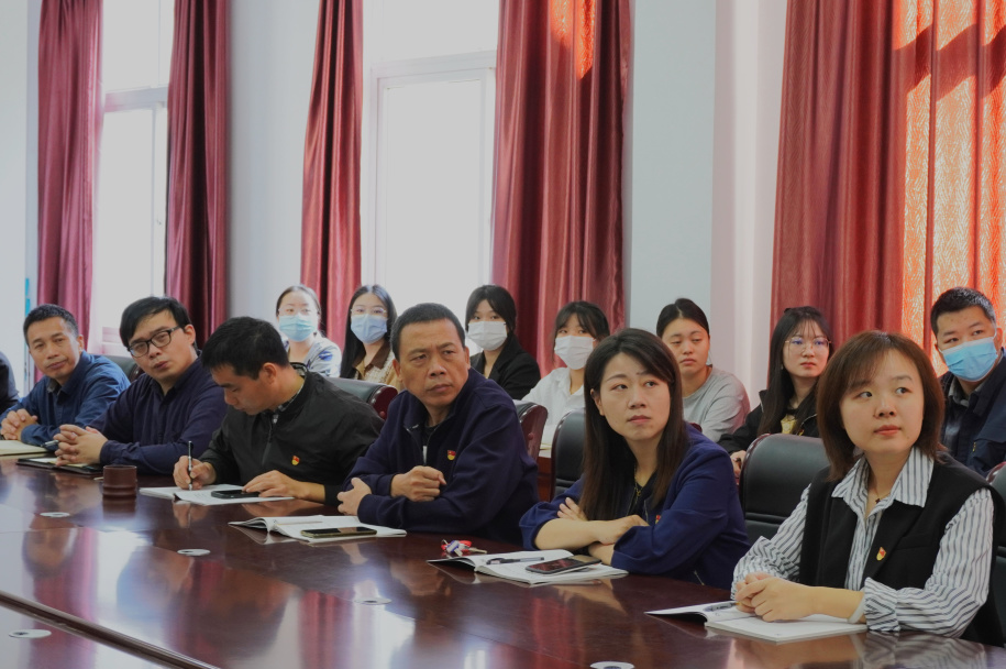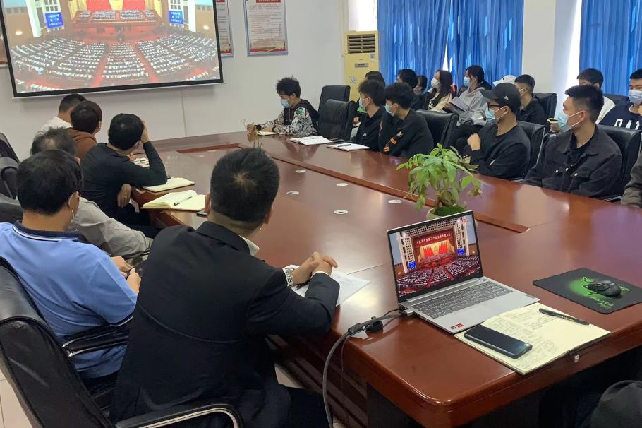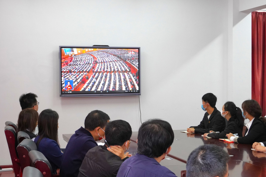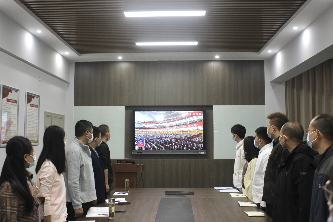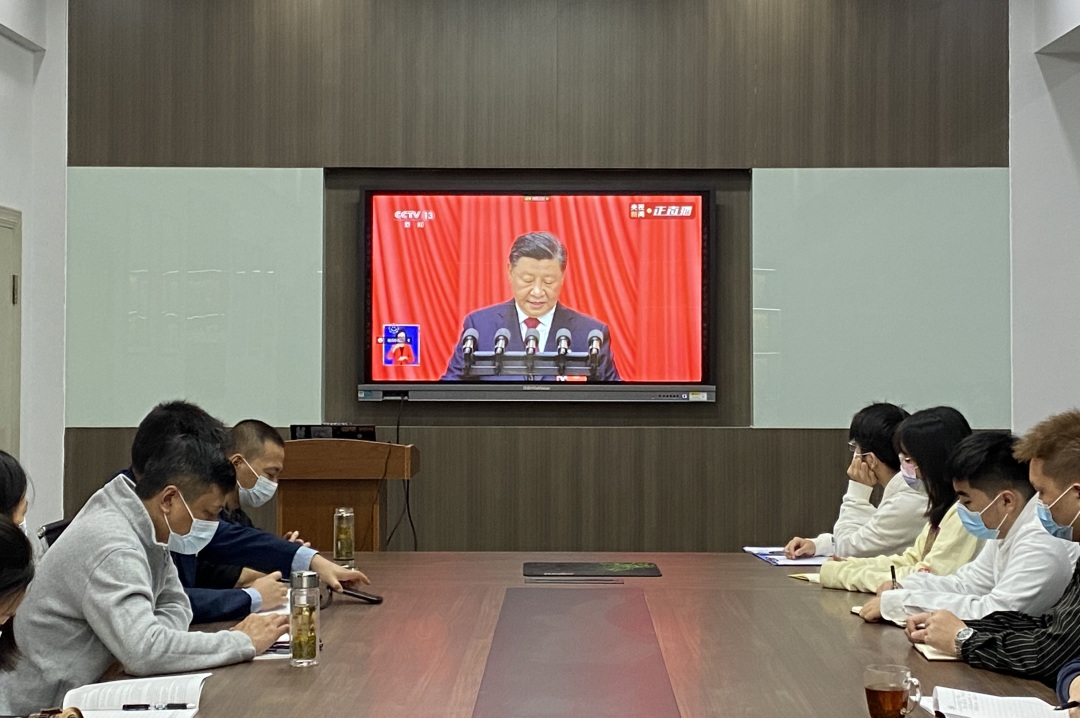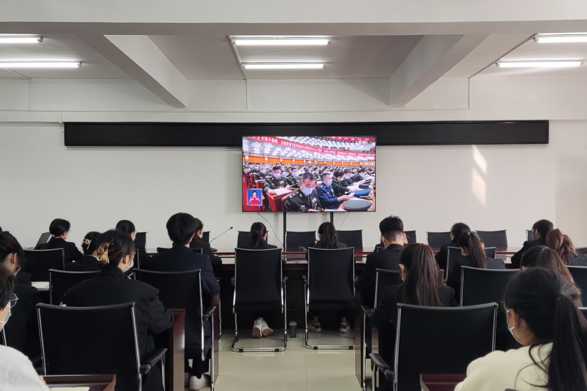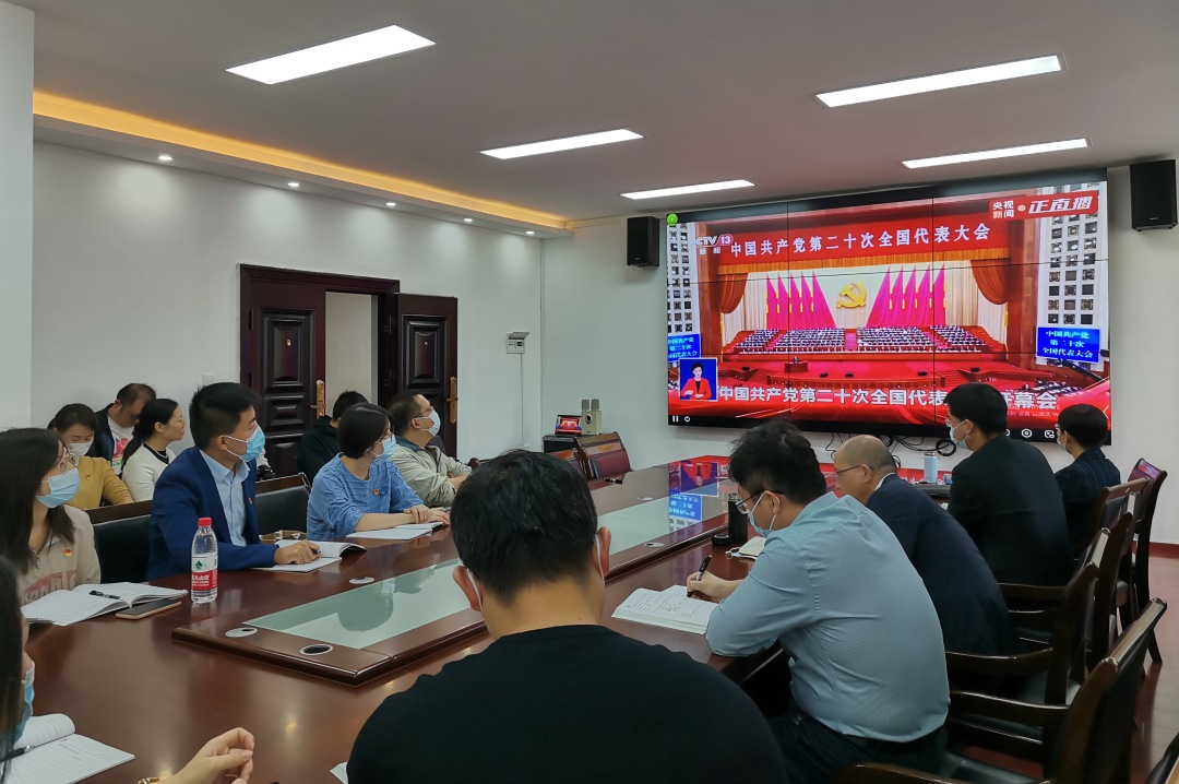 ▲ 全体校领导;机关党委所属党支部党员;党外人士代表在行政楼五号会议室收看大会直播