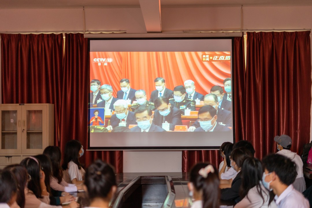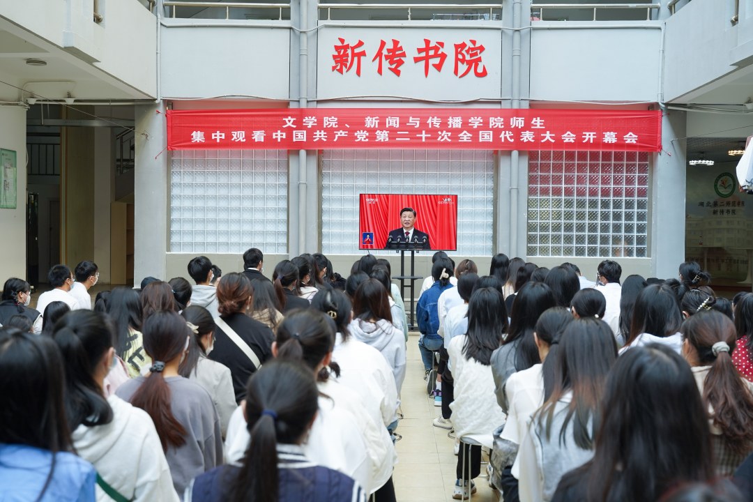 ▲ 文学院、新闻与传播学院师生收看大会直播