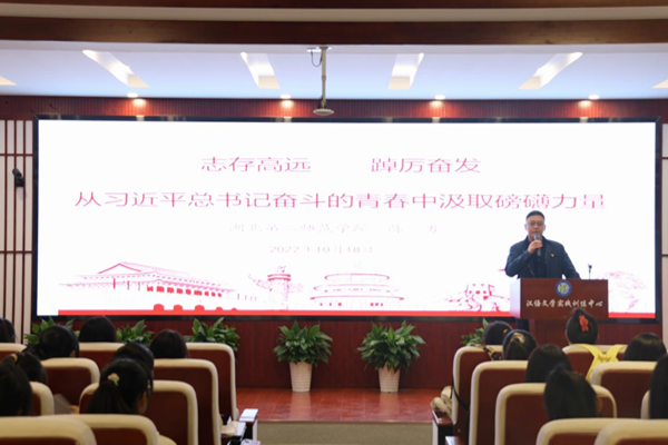 本网讯(大学生新闻宣传中心见习记者 李琳)10月18日晚,副校长陈勇在一号教学楼301教室以“志存高远、踔厉奋发——从习近平总书记奋斗的青春中汲取磅礴力量”为主题为新闻与传播学院和文学院2022级新生讲授思政课。