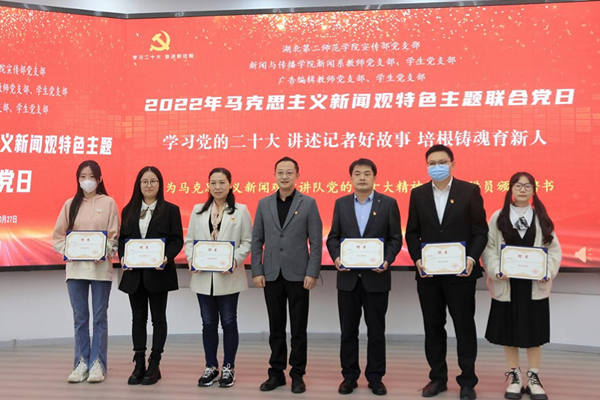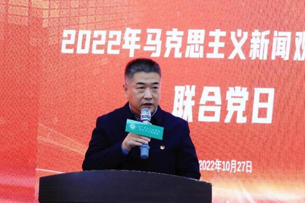本网讯(通讯员 吴梦谊)10月27日下午,新闻与传播学院在学院多功能厅开展2022年马克思主义新闻观特色联合主题党日活动。本次联合主题党日活动的主题是“学习党的二十大,讲述记者好故事,培根铸魂育新人”。校党委常委、宣传部部长周忠出席活动,新闻与传播学院副院长、广告编辑教师党支部书记何国军主持活动。