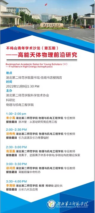 不鸣山青年学术沙龙(第五期)——高能天体物理前沿研究