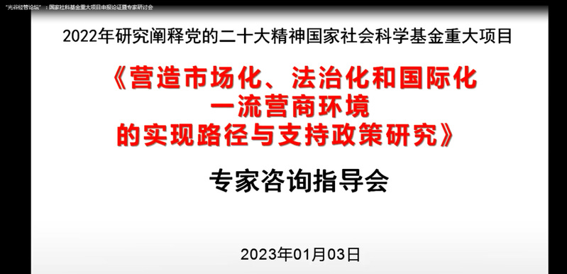 1月3日下午,经济与管理学院顺利召开2023年度研究阐释党的二十大精神国家社会科学基金重大项目《营造市场化、法治化和国际化一流营商环境的实现路径与支持政策研究》申报论证专家指导会暨“光谷经管论坛”第三期线上会议。