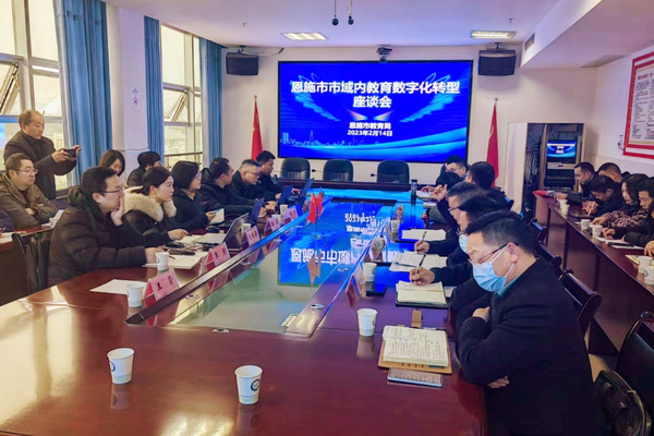 张学明局长对杨莉一行表示欢迎,他希望以此次调研为起点,加强校地对接合作、交流学习、共同进步。恩施市教育技术装备站谭昌明站长重点介绍恩施市教育信息化基本情况、发展历程和特色等相关情况。恩施州教育技术装备站、恩施市教育局相关部门负责人及部分中小学校长、学校信息化主任参加座谈交流。