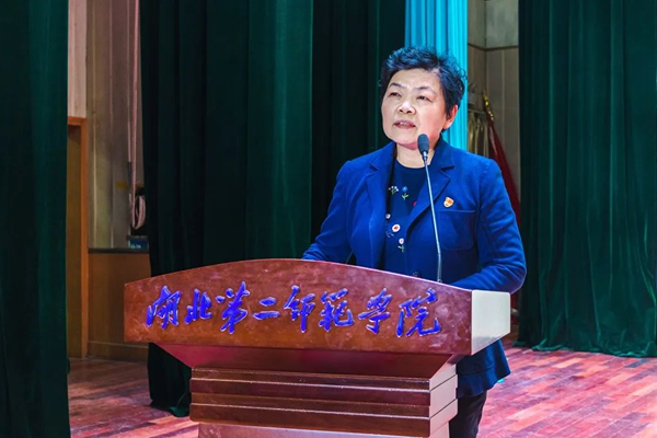 在课堂尾声,杨鲜兰勉励广大师生,从这个回归校园的春天出发,坚定信心,从我做起,从现在做起,肩负使命、勇担重任,为实现“达标申硕”、建设教师教育特色鲜明的高水平师范大学努力奋斗。