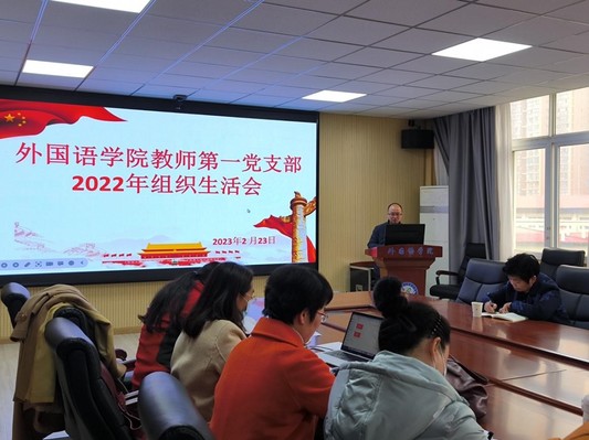 本网讯 (通讯员 黄锦)2月23日,校党委书记杨鲜兰参加外国语学院教师第一党支部组织生活会。外国语学院院长刘晖、教师第一党支部全体党员参加活动。会议由支部书记徐勇主持。