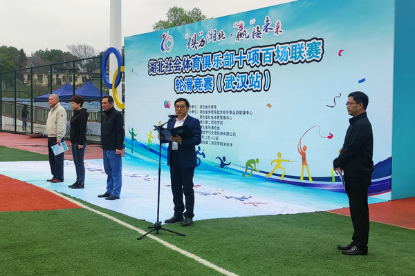 本网讯(通讯员 尹开宁)3月11日,由湖北省体育局主办、我校承办的“‘俱’力湖北·‘赢’接未来”湖北体育社会俱乐部百场联赛轮滑竞赛(武汉站)在BEAT365官网速滑场顺利举行。省体育局二级巡视员、省轮滑协会会长徐彦等省体育局领导出席开幕式,BEAT365官网党委常委、副校长田恒平致欢迎辞。