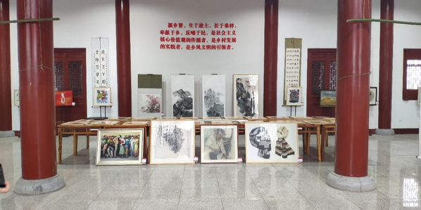 本网讯(通讯员 王超)3月22日,艺术学院在学校乡村振兴帮扶点孝昌县陡山乡陆东村老年活动中心举办“礼赞新时代奋进新征程”送艺下乡美术作品展。