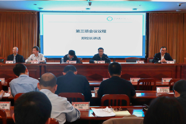 校长郑军作动员讲话。他深入阐明了本科教育教学审核评估的意义,讲解了本科教育教学审核评估的核心要义,特别强调了教育教学审核评估内涵、工作目标、评估特点等。他指出,全体教职员工要提高认识,领会政策,各教学学院和职能部门要有序实施,落实本科教育教学审核评估工作要求,精心做好衔接工作,严格落实评建职责,科学融入创新指标,推进教育教学改革,全力做好审核评估的自评自建工作,以高水平的评建工作推进学校高质量发展再上新台阶。