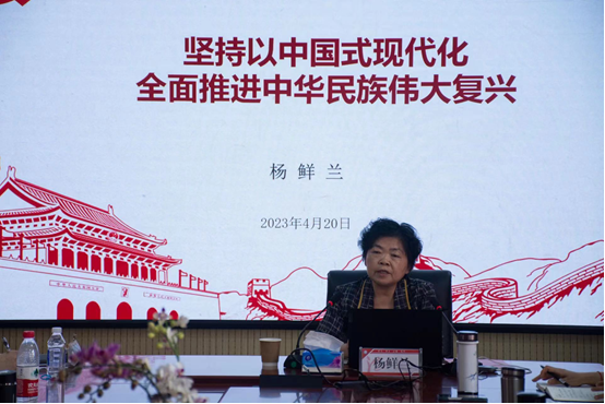 杨鲜兰以《坚持以中国式现代化全面推进中华民族伟大复兴》为题,从实现现代化是近代以来世界各国孜孜以求的目标、近代以来中华民族复兴的目标就是实现现代化、中国的现代化必须是“中国式的”、中国式现代化道路是实现中华民族伟大复兴必由之路等四个方面进行了深入剖析。报告主题鲜明,内容丰富,旁征博引,逻辑严密,既是一堂精彩的党史教育课,又是思想政治课,也是党性修养课,使学院广大培训学员深受鼓舞。