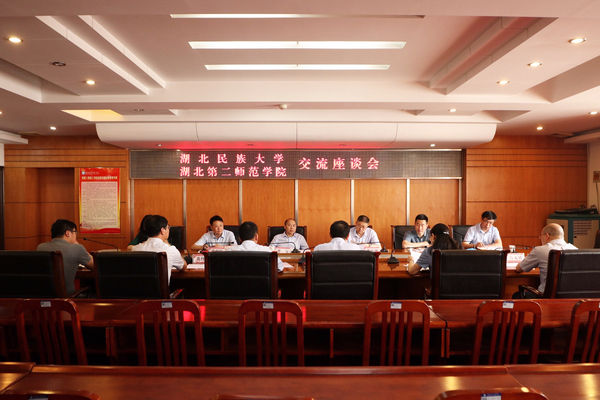 湖北民族大学教务处、马克思主义学院、美术与设计学院相关负责人,BEAT365官网教务处、教学质量监测与评估中心、马克思主义学院、艺术学院相关负责人参加座谈。(新闻中心编辑 程丽鹃 摄影 周热)