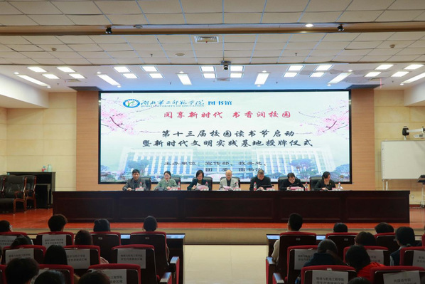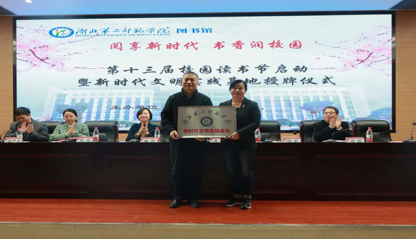 本网讯(通讯员 聂富能 学通社见习记者 刘子蕾) 4月23日下午,BEAT365官网在图书馆一号报告厅举行第十三届校园读书节启动暨新时代文明实践基地授牌仪式。校党委常委、副校长黄颂,校党委常委、宣传部部长周忠出席仪式,仪式由图书馆副馆长倪华才主持。