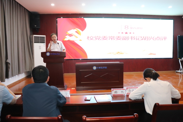 活动中,学生第一党支部党员、2021年“全国大学生自强之星”王宏为带领全体党员诵读党章;计算机科学与技术系主任刘利敏老师带领全体党员学习了习近平关于“牢牢把握高质量发展这个首要任务”等重要讲话精神;毕业生党员代表金宇、王宏为分享了大学四年收获;在校学生党员代表宋丁沣和张壮分别分享了大学生活感悟;教师代表、学院副院长余良俊教授和教师第一党支部书记李剑教授鼓励毕业生们做好求职就业准备,广泛搜集就业信息,会竭尽所能为毕业生们提供帮扶,赋能同学们成长成才。