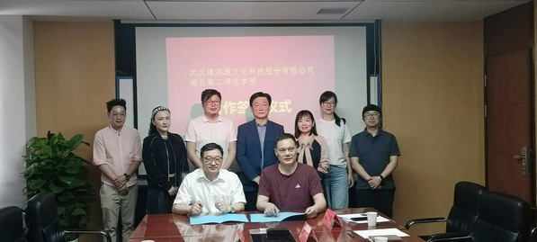 田恒平代表学校与武汉博润通文化科技股份有限公司、武汉惟楚新未来科技有限公司、武汉源火文化传播有限公司、武汉华拓映画动漫科技有限公司、武汉柯尼尔家具有限公司等五家企业签署实习就业协议。