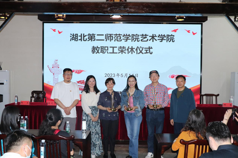 学习观摩结束后,学院在大悟金岭干部培训中心为学院荣休的老同志代表雷静和、陈元玉、张名举办了一场特别的荣休仪式。仪式由学院党委书记章倩主持,院长金波教授代表艺术学院感谢荣休老同志为学院发展做出的卓越贡献。王超、陈郢、张川和蒋芳四位青年教师代表,回顾了和老同志们共事的点点滴滴,感谢他们对年轻教职工的关心、帮助和指导。