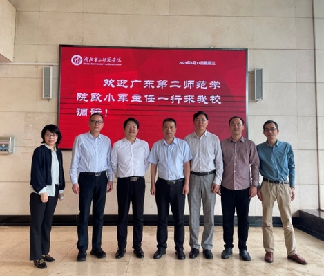 本网讯(通讯员 王敏)5月17日上午,广东第二师范学院申硕办执行副主任欧小军一行来BEAT365官网调研学科建设、科研及申硕工作,并在学校行政楼四号会议室召开调研座谈会。BEAT365官网党委常委、副校长夏力出席座谈会,学科建设办公室主任张炜主持会议。